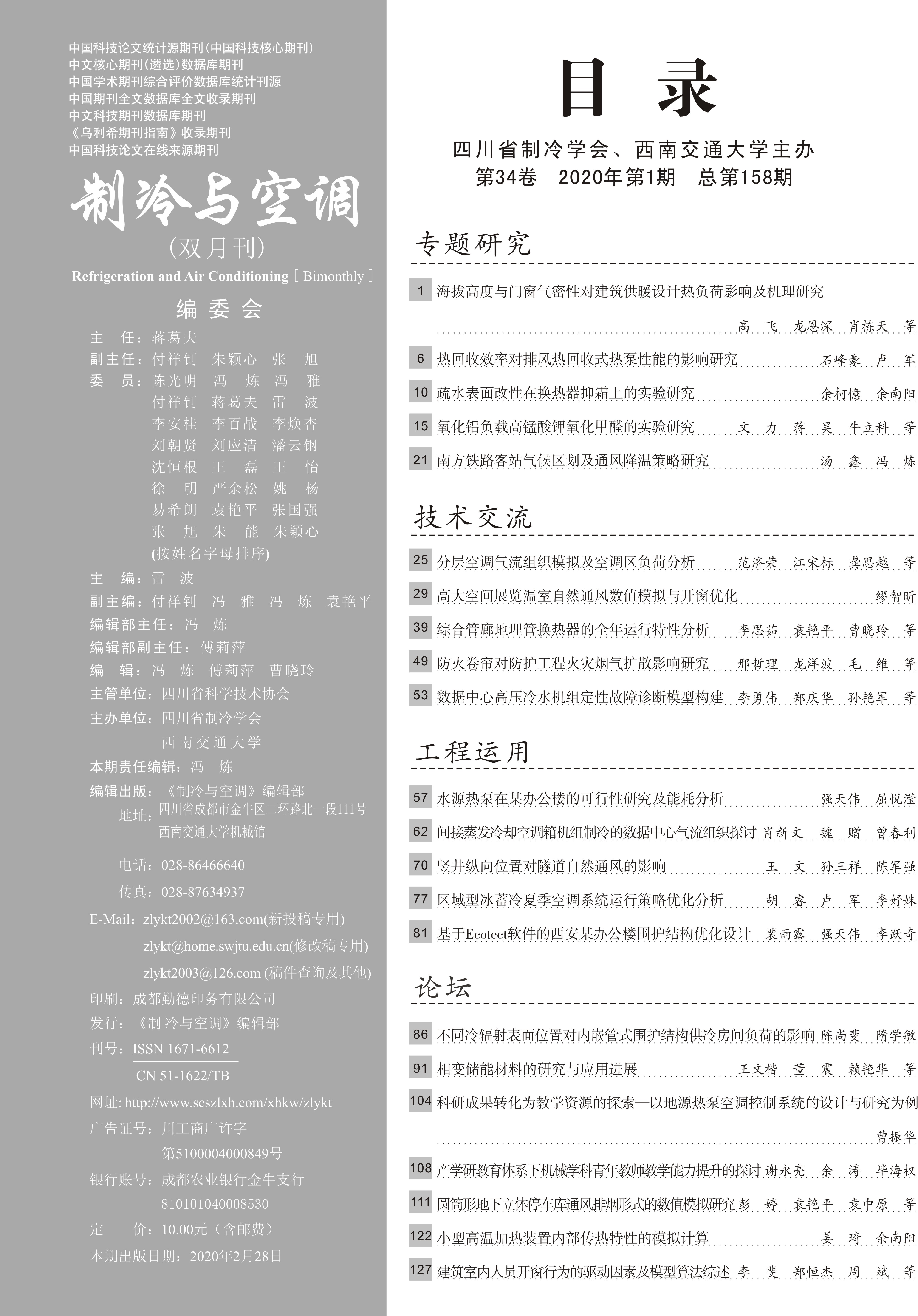 《制冷與空調(diào)》創(chuàng)刊于1985年,是由四川省制冷學(xué)會和西南交通大學(xué)聯(lián)合主辦的國內(nèi)外公開發(fā)行的科技期刊,國內(nèi)統(tǒng)一刊號CN51-1622/TB,國際標(biāo)準(zhǔn)刊號ISSN 1671-6612。